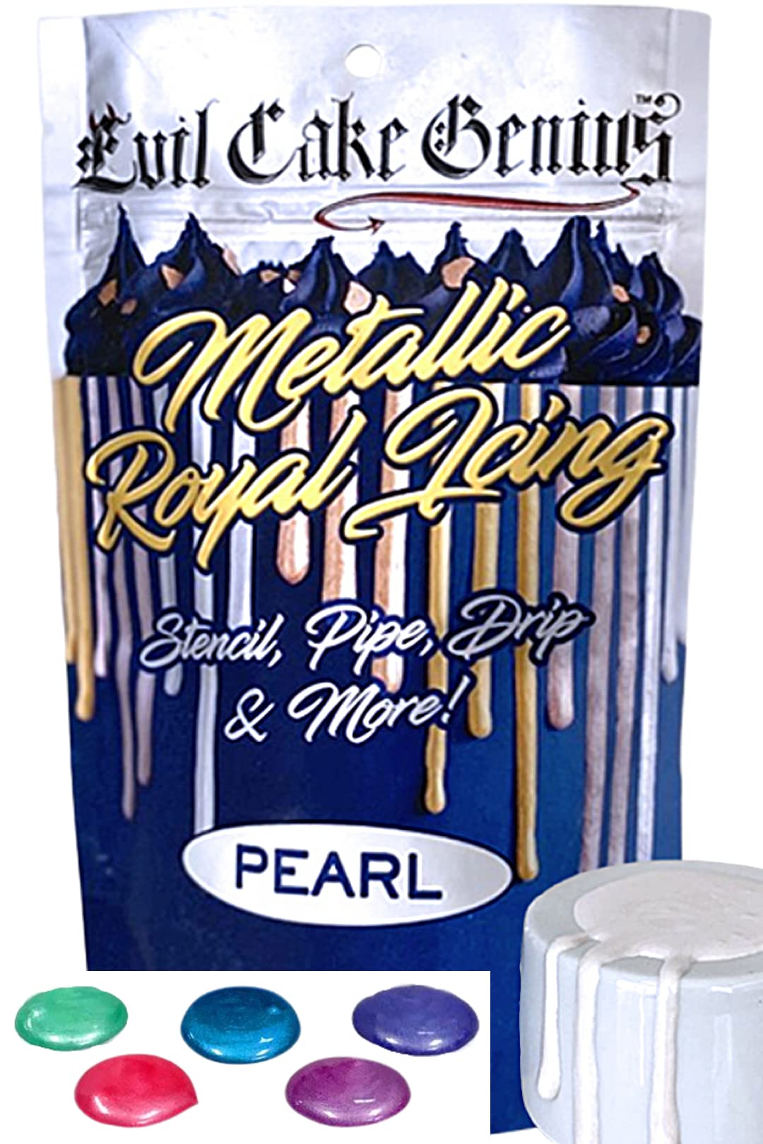 Amazon Com Evil Cake Genius Pearl Metallic Royal Icing Grocery Gourmet Food